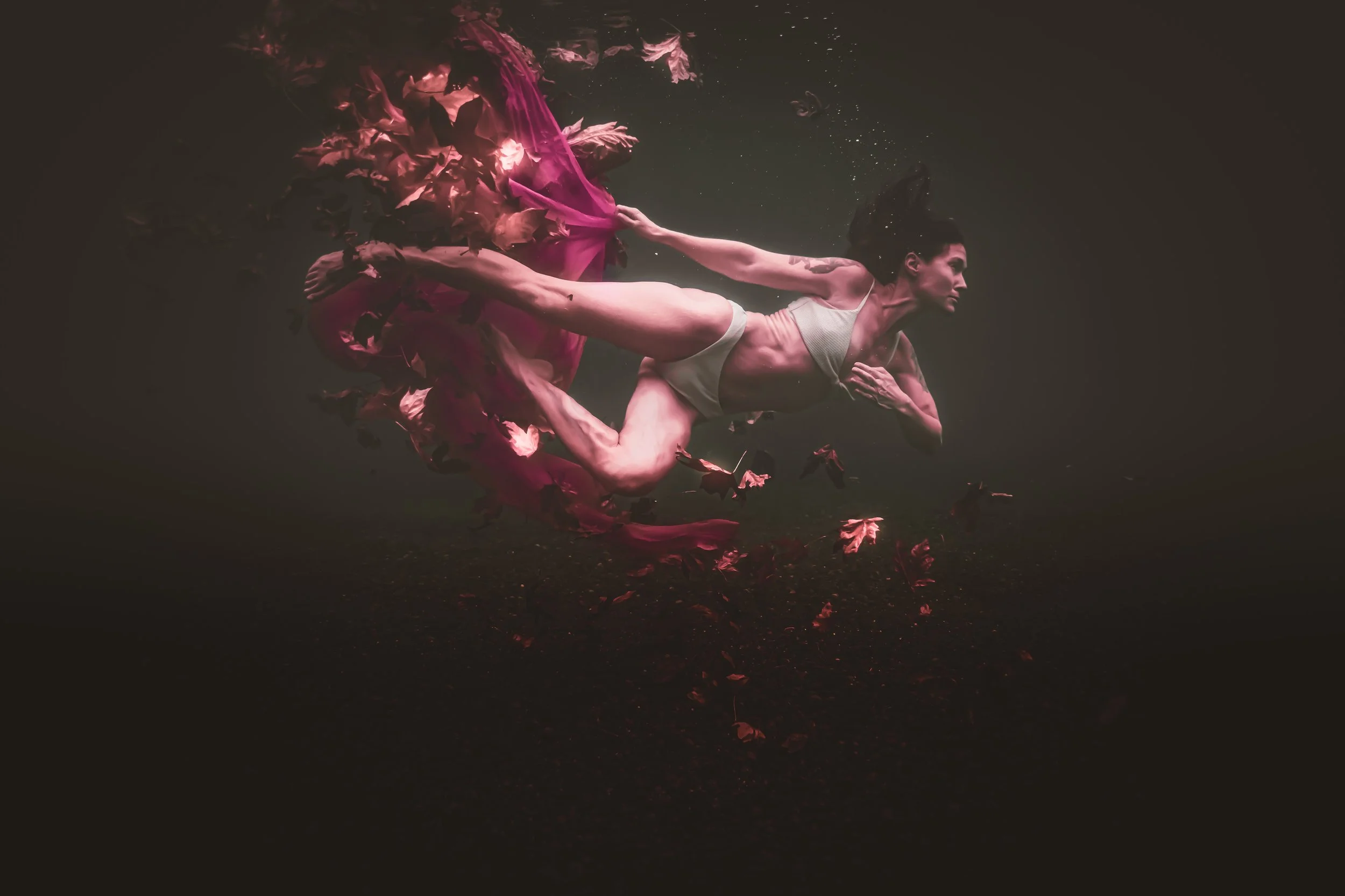 Depending on the swimmer, the collaborative nature of the shoot will take shape from there. Of the last year, I’ve done a lot of shooting with Jill (image below). She is an artist and art teacher by profession, with a background in dance and gymnastics from her younger years. So she brings an eye toward composition to the table, and together we can talk through an idea with the hopes of creating curated images once in the water.