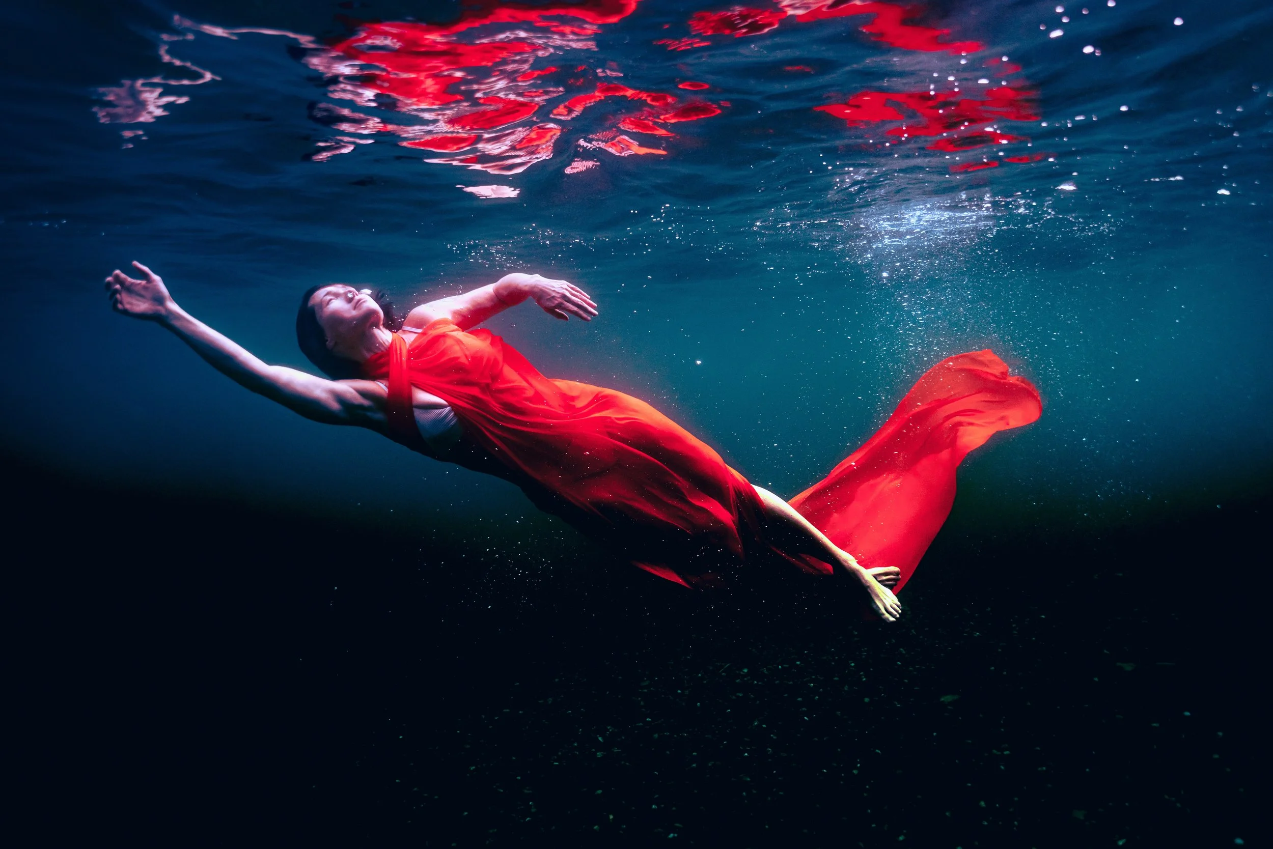 It’s always best to talk about the vision for the day. Talk through the steps to achieve certain poses, and the ideas or spirit of the shoot. With limited time, it’s wise to at least head into the water with a basic sense of where we think things can go. That can always change (and sometimes does) once in the water. Maybe the situation surprises us, changes or just otherwise isn’t what we thought it might be. Maybe some sun rays open up and change the direction of the day. Or maybe it’s darker than thought. It could be any number of things. But still, we talk about the goals and sometimes even rehearse them on land a few times. (Sometimes if there is a breeze and we are using fabric, we can mock-run the effects of the fabric in the breeze, as though it was water current.)